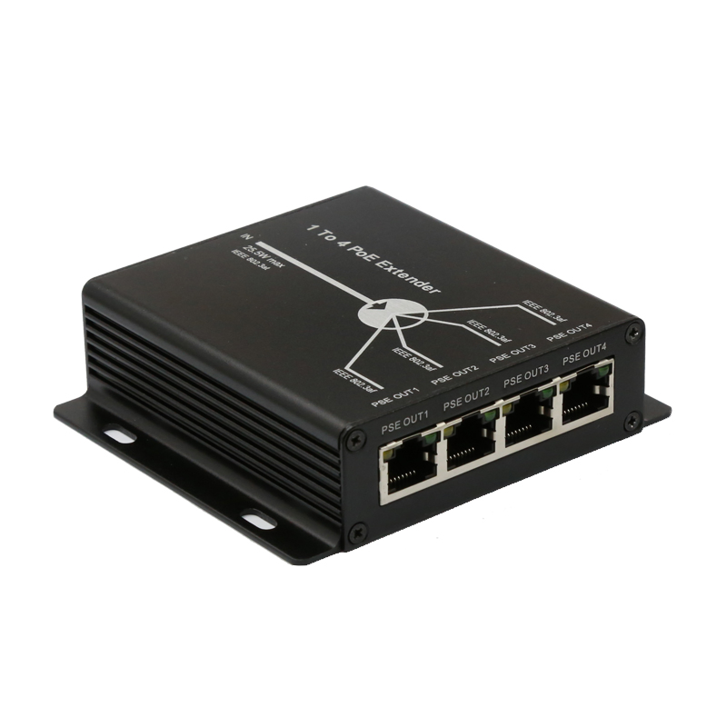 1 to 4 PoE Splitter and ExtenderProduct overview4-Ports PoE Extender has 5 10/100M PoE ports, among them , 1 port for power input, and others for power output.Comply with 10/100 BASE-TX, IEEE802.3at (power-in) / IEEE802.3af (power-out). The power input is 25.5W in total.Power output for single port ......