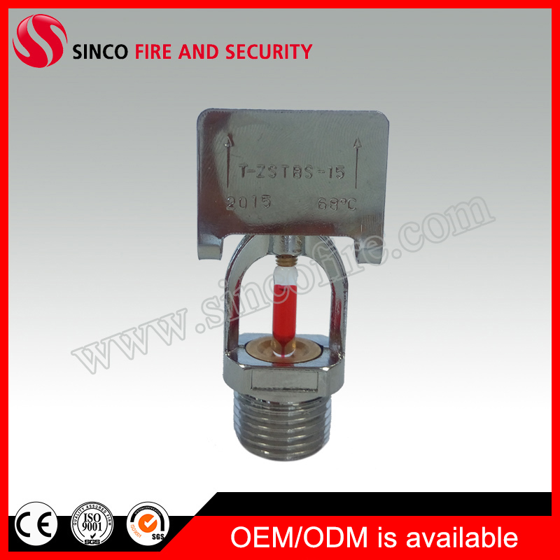 The sprinkler is composed of sprinkler frame, sealant and glass bulb. It is to be installed in the protective district via ductwork, acting as a fire detector and auto sprayer. In case of fire inside the protective district, the atmosphere temperature rises up and the liquid inside the glass bulb expands after being heated and explodes after reaching the operating temperature of the glass ball. The sealant drops and the sprinkler sprays to the protective district for fire extinguishments subject to the preset shape of spraying.Technical parameters:| Type | Upright / Pendent /Sidewall/Conventional/Concealed |